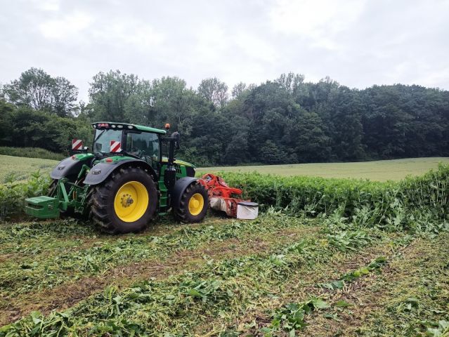 Dans le cadre du projet, les récoltes destinées à la valorisation fourragère ont systématiquement été fauchées et fanées au champ durant 1 à 2 journées ensoleillées sans manipulation excessive. Il a en effet été constaté que les feuilles de silphie deviennent très cassantes une fois sèches et qu’elles peuvent facilement être perdues. La fauche a systématiquement eu lieu avec une faucheuse frontale.