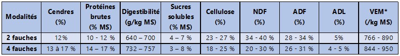 Évolution des valeurs alimentaires selon le nombre de fauches