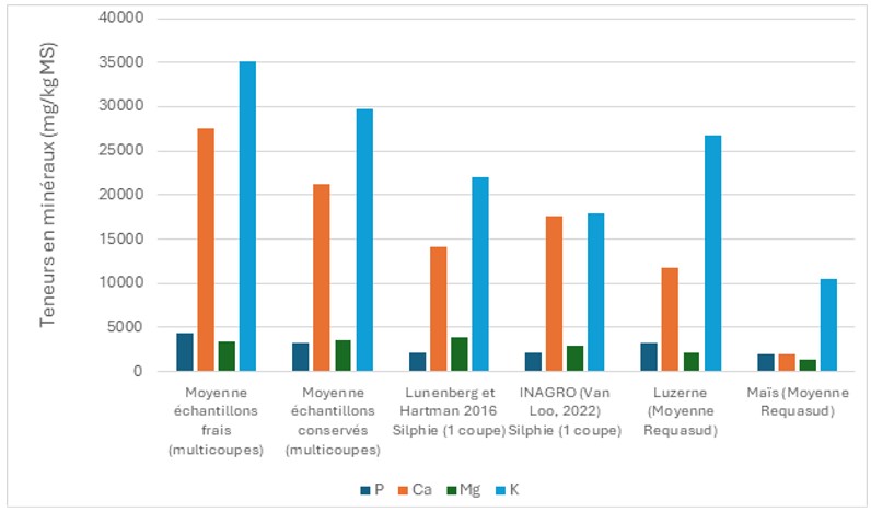 Teneurs en minéraux dans le fourrage de silphie (+ comparaison avec luzerne et maïs)